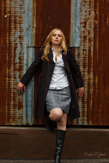 This pic is another from my photo shoot with Kaylin Johnson. It is one of my favorites from the shoot. I like photographs that have a bit of irony or juxtaposition in them. You wouldn't normally see a beautiful woman dressed up hanging out in places built with rusted corrugated metal. And yet, she looks like she has succumbed to her situation. Another one of my goals is to not only do more photo shoots - I have two scheduled this month - but to make them more creative with story telling images.